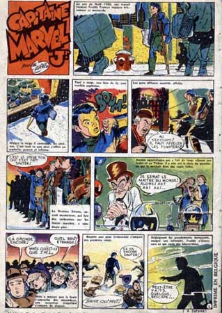 by the Societe Parisienne d'Edition.) The story was 26-pages long, and was published in "Bravo", 10th Year (Volume 10), Nos. 16 to 41 (1950). It pit Captain Marvel Jr against the evil Dr. Satanas. |