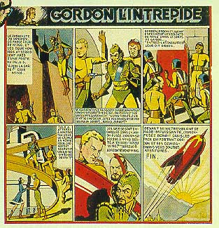 strips in France. After the end of "Robinson", Flash Gordon migrated to "Bravo", where it was retitled "Gordon l'Intrepide" [Gordon the Fearless]. In early 1942, soon after the US entered World War II, the Nazis stopped the import of American materials and ordered the discontinuation of US strips. Eventually, in mid-'42, the "Bravo" editors ran out of original Flash Gordon pages and asked Edgar P. Jacobs to continue the series as a ghost artist, which he did for a few weeks. But the Nazis stepped in and gave "Bravo" a week to stop the series. So the "Bravo" editors were forced to ask Jacobs to draw a final page bringing the series to a quick conclusion. |
