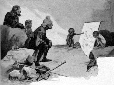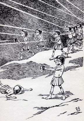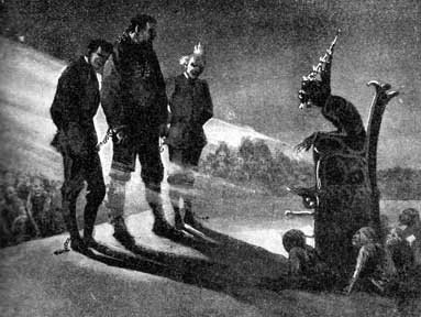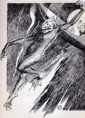 They meet another race of civilized macrocephalic gnomes, and are taken before their King, in the city of Fire.