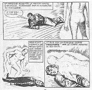| Writer: Jean-Marc Lofficier. Artist: Jean-Jacques Dzialowski. "Un Tigre par la Queue" (A Tiger by the Tail) (Fantask No. 1, 2001) "Double Jeu" (Double Game) (Fantask No. 2, 2001) "L'Ombre du Passé" (The Shadow from the Past) (Fantask No. 3, 2001) "Le Regard de l'Abysse" (Looking Into the Abyss) (Fantask No. 4, 2001) "Transition" (collected with episodes 1-4 in Homicron, 2003) Homicron returned in 2001 in Fantask. We learned what happened with the Kyrosians. Ted White was eventually killed, and the Homicron energy persona was transferred into the body of Rita Tower, who has become the new Homicron. |