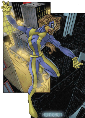 Homicron is an alien from planet Alpha, whose inhabitants have the power to turn into energy