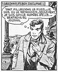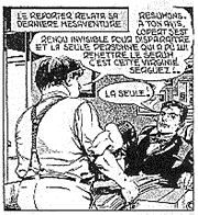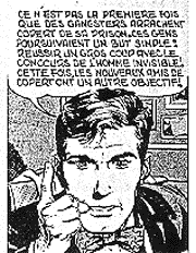 The Stories Writer: Jean Ollivier Artist: Pierre Le Guen 1. Jacques Flash contre l'Homme Invisible [Jacques Flash vs. The Invisible Man] (67 p.) (1957; rep. Vail., 1960) 2-3. Jeux de Mains, Jeux de Vilains [Hand Games, Evil Games] / Le Retour de l'Homme Invisible [The Return Of The Invisible Man] (56 p.) (1959; rep. Vail., 1961) Writer: Jean Ollivier Artist: Gerald Forton 4. Contre Cyrano de Bergerac (26 p.) (1960) 5. Bagarres en Birmanie [Battle In Burma] (22 p.) (1960) 6. Matricule 9929 FK 75 [License Plate 9929 FK 75] (43 p.) (1961) Writer: Pierre Castex Artist: René Deynis 7. Le Trésor de l'Homme Invisible [The Invisible Man's Treasure] (11 p.) (1961) 8. Contre les Hommes Invisibles [Against The Invisible Men] (26 p.) (1962) 9. Invisiblement Votre [Invisibly Yours] (30 p.) (1963) 10. La Fiancée de l'Homme Invisible [The Bride Of The Invisible Man] (32 p.) (1963) 11. Faites Chauffer la Colle [Heat Up The Glue] (34 p.) (1964) 12. L'Homme Invisible Joue et Gagne [The Invisible Man Plays To Win] (10 p.) (1964) 13. L'Homme Invisible fait des siennes [The Invisible Man Plays Tricks] (63 p.) (1965) 14. Le Fantôme de l'Homme Invisible [The Ghost Of The Invisible Man] (1965) 15. Contre 3,1416 (1965) 16. Cache-Cache Catcheur [Hide And Seek With A Wrestler] (1965) 17. Le Grand Chantage [The Great Blackmail] (1965) 18. Enlevez, c'est pesé [Take It Away, It's Been Weighed] (1965) 19. Les Pirates de l'Air [The Air Pirates] (1965) 20. Teuf-Teuf Polka [Jalopy Polka] (1966) 21. Les Hercules d'Acier [The Steel Hercules] (1966) 22. Ballet Ballon [Balloon Ballet] (1966) 23. Le Gang des Tracteurs [The Tractor Gang] (1966) 24. Scandale chez les As [Scandal Among The Aces] (1966) 25. Branle-bas chez les Radios Pirates [Alert Among The Radio Pirates] (1966) 26. Les Pères Noël de l'Épouvante [The Terrifying Santa Clauses] (8 p.) (1966) 27. Avez-vous vu Mirza? [Have You Seen Mirza?] (1967) 28. Les Voyageurs du Futur [The Travellers From The Future] (1967) 29. Méfiez-vous des Fantômes [Don't Trust The Ghosts] (1967) 30. Le Grand Maître de Bornéo [The Master Of Borneo] (1967) 31. Le Commando Libellule [The Dragonfly Commando] (1967) 32. Les Abominables Petits Hommes Verts [The Awful Little Green Men] (1967) 33. La Marée Nore [The Black Tide] (1968) 34. Le Jour des Dauphins [The Day Of The Dolphins] (1968) 35. L'Étrange Safari [The Strange Safari] (1968) 36. Rapt en Plein Ciel [Skyjacking] (1968) 37. Alerte au X43 (1968) 39. Les Chevaliers de l'Hélibulle [The Knights Of The Helibubble] (1969) 40. Les Esclaves de la Forêt [The Slaves Of The Forest] (1969) 50. 24 Heures dans l'Autre Monde [24 Hours In The World Beyond] (1970) Writer: Pierre Castex Artist: Max Lenvers 38. Le Fantôme du Zoo [A Ghost At The Zoo] (1968) 41. La Nuit des Vampires [The Night Of The Vampires] (1969) 42. La Folie des Diamants [The Diamond Madness] (1969) 43. Terreur sur la Manche [Terror Over The Channel] (1969) 44. Aller sans Retour [One-Way Ticket] (1969) 45. Miracle à Colombes (1969) 46. Furie sur l'Or Noir [Black Gold Fury] (1969) 47. La Cadena de Uro (1970) 48. Les Disparus d'Alcatraz [Disappearances In Alcatraz] (1970) 49. Le Mur des 9000 Soleils [The Wall Of 9000 Suns] (1970) 51. Le Mammouth du Ciel [The Sky Mastodon] (1970) 52. Bien Joué, Fillette! [Well Played, Little Girl!] 53. Safari à l'Héritage [Inheritance Safari] (1971) Writer: Pierre Castex Artist: Legoff 54. Nuages sur Nouakcholt [Clouds Over Nouakcholt] (1973) |