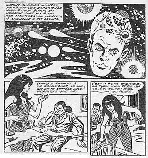 The Stories 1. Jaleb le Telepathe [Jaleb The Telepath] 2. Police Secrete [Secret Police] 3. Les Animaux de Boulder Town [The Animals Of Boulder Town] 4. Les Surhommes Attaquent [Attack Of The Supermen] 5. Chantages [Blackmails] 6. Les Tambours de Nakika [The Drums Of Nakika] 7. L’Homme de Kurashiki [The Man From Kurashiki] 8. … Le Peuple? […The People?] 9. USS Nucleus! 10. L'Echiquier Galactique [Galactic Chessboard] 11. Le Peuple des Etoiles [The Star People] 12. Planete Frontaliere [Border Planet] 13. Les Fauteurs de Guerre [The War Makers] 14. Les Professionnels [The Professionals] 15. La Forteresse [The Fortress] 16. La Destruction [The Destruction] 17. Les Sous-Hommes!!! [The Underpeople!!!] 18. La Grande Revolte [The Great Revolt] ![]() |