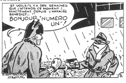 Under the pseudonym of "Michel Denys", Greg wrote and drew the adventures of Jacques Bertrand, reporter of the daily London Planet, who fights crime as -- THE CAT. His main foe is the mysterious crime syndicate boss "Number 1". 26 episodes were serialized in the magazine "Heroic Albums" in 1953.