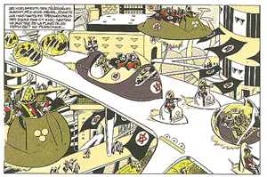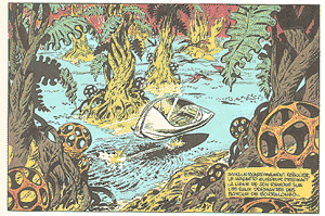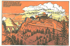 The Stories 1. Le Dragon de Feu [The Dragon Of Fire] (TI Nos. 952-970, 1966-67) 2. Les Soleils de Glace [The Suns Of Ice] (TI Nos. 976-997, 1967) 3. Le Maitre de Terango [The Master Of Terango] (TI Nos. 1009-1029, 1968) 4. La Planète de l'Angoisse [The Planet Of Terror] (TI Nos. 1040-1059, 1968-69) 5. La Forêt d'Acier [The Forest Of Steel] (TI Nos. 1082-1102, 1969) 6. Le Secret des 7 Lumières [The Secret Of The 7 Lights] (TI Nos. 1118-1138, 1970) 7. Le Cratère aux Sortilèges [The Crater Of Spells] (TI Nos. 1183-1196, 1971) 8. La Légion des Anges Maudits [The Legion Of The Fallen Angels] (TI Nos. 1206-1221, 1971-72) 9. 24 Heures pour la Planète Terre [24 Hours For Planet Earth] (TI No.1258-TH No. 10, 1972-73) 10. Le 6ème Continent [The Sixth Continent] (TH Nos. 53-60, 1974) 11. La Vallée des Eaux Troubles [The Valley Of Murky Waters] (TH Nos. 83-98, 1974) 12. La Porte de Cristal [The Crystal Gate] (NT Nos. 10-25, 1975-76) 13. L'Enclume de la Foudre [The Anvil Of Thunder] (NT Nos. 96-107, 1977) 14. Le Rivage de la Fureur [The Shores Of Wrath] (1981) 15. Roubak, Ultime Espoir [Rubak: Ultimate Hope] (1984) 16. Caragal (1985) 17. Les Spores de Nulle Part [The Spores From Nowhere] ("Tintin Pocket" 1970; collected 1990) 18. Rendez-Vous à 20 Heures en Enfer [Rendezvous At 20:00 In Hell] (1994) ![]() TERANGOPOLIS |