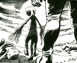 but not unsurprisingly, neglected by literary scholars. Rosny's first science fiction tale was the short story Les Xipehuz (1887), in which primitive humans (the story takes place a thousand years before Babylonian times) encounter inorganic aliens, with whom all forms of communication prove impossible. Men eventually drive away these invaders, but the hero mourns the loss of another lifeform. This was the first time that science fiction had abandoned its usual anthropomorphic approach in the description of alien life. The story Un Autre Monde [Another World] (1895) establishes that humans share the Earth with the land-bound Moedingen and the air-borne Vuren, two infinitely flat and invisible species who cohabit with us. Only a mutant whose vision was superior to that of ordinary men could see them. In Le Cataclysme [The Cataclysm] (1896), an entire region of France sees the physical laws of nature change, as a result of the arrival of a mysterious electro-magnetic entities from outer space. Rosny's short novel, La Mort de la Terre [The Death Of The Earth] (1910), takes place in the far future, when Earth has all but dried out. In it, the last descendents of mankind become aware of the emergence of a new species, the metal-based "Ferromagnetals", fated to replace us. La Mort de la Terre is one of the most moving tales ever written about the extinction of Man. One of the striking concepts of this poetic, evocative epic is that our disappearance is not the result of some kind of war or cataclysm, but merely that of natural evolution. |