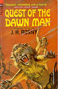 gave nobility to the genre with five powerful classic novels: Vamireh (1892), Eyrimah (1893), the world-renowned classic La Guerre du Feu [Quest For Fire] (1909), Le Félin Géant [The Giant Cat] (1918) (sometimes known as Quest of the Dawn Man) and Helgvor du Fleuve Bleu [Helgvor of the Blue River] (1930). In these novels, he combined the notions of modern drama with the ability to depict Man’s early days in a colorful, yet totally believable fashion. The dialogue between the prehistoric man and the mastodon of La Guerre du Feu is not very different from the attempts at communicating with the Xipehuz. Rosny's prehistoric novels became so popular and widely respected that La Guerre du Feu was even included in French schools' curriculum. |