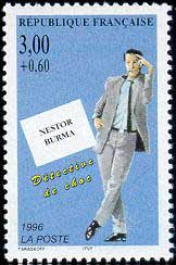 and in 1958, thre Grand Prize of Black Humor [Grand Prix de l'Humour Noir] for his Nouveaux Mystères de Paris. Malet passed away in 1996, aged 87. He was also the creator of investigative reporter Jonhny Metal (9 volumes). The character of Nestor Burma was honored by a French Post Office stamp.