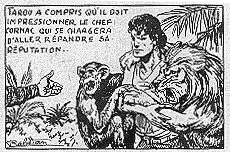 Publishing History Bob Dan was the pseudonym of Robert Dansler (1900-1973), a prolific writer/artist and author of numerous adventure stories, starting in 1935: Jim Mystère, Zorro, Les Fils du Vents [Sons of the Wind], Bill Tornade, Jack Sport, etc. His best-remembered creation, however, remains the Tarzan-like hero, Tarou. |